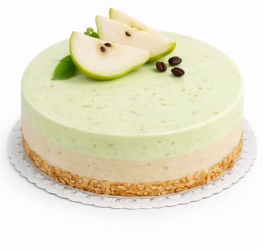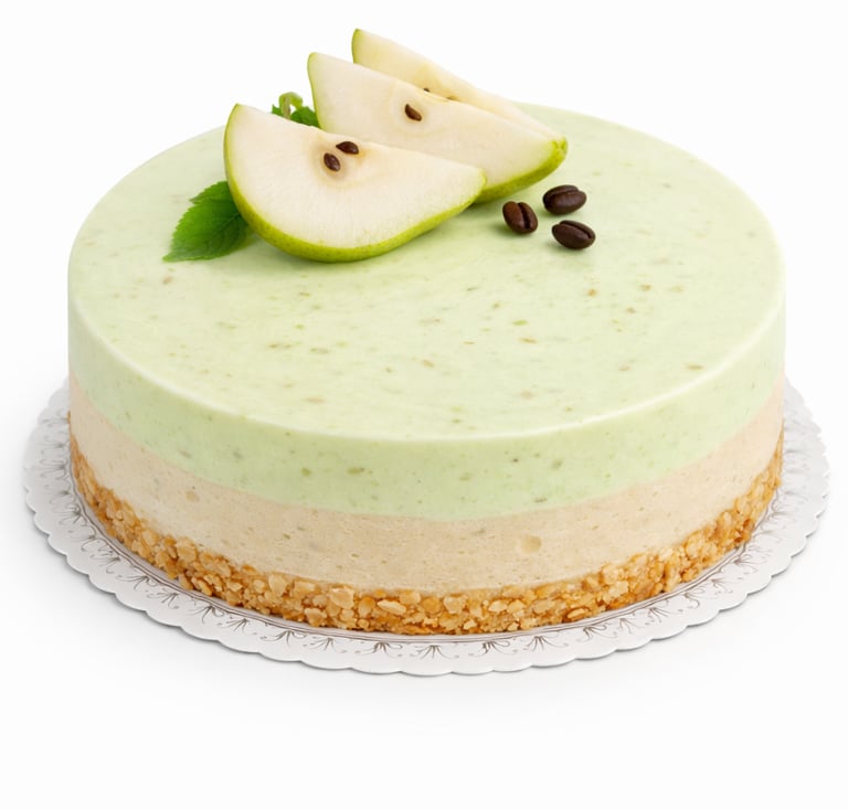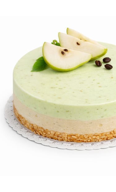En len och fluffig moussetårta med smak av päron. Denna lätta tårta förgyller vilket firande som helst.