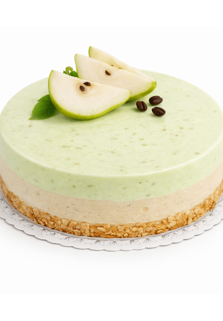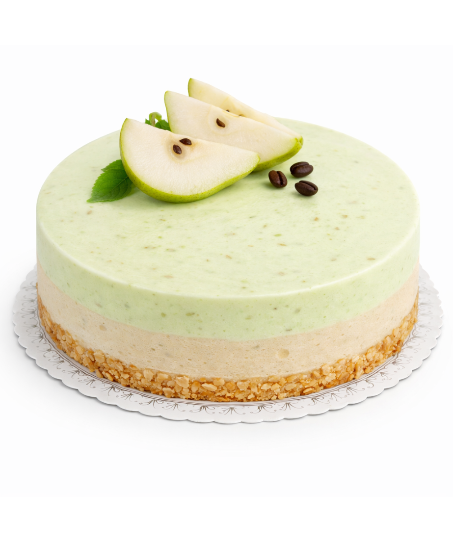 En len och fluffig moussetårta med smak av päron. Denna lätta tårta förgyller vilket firande som helst.