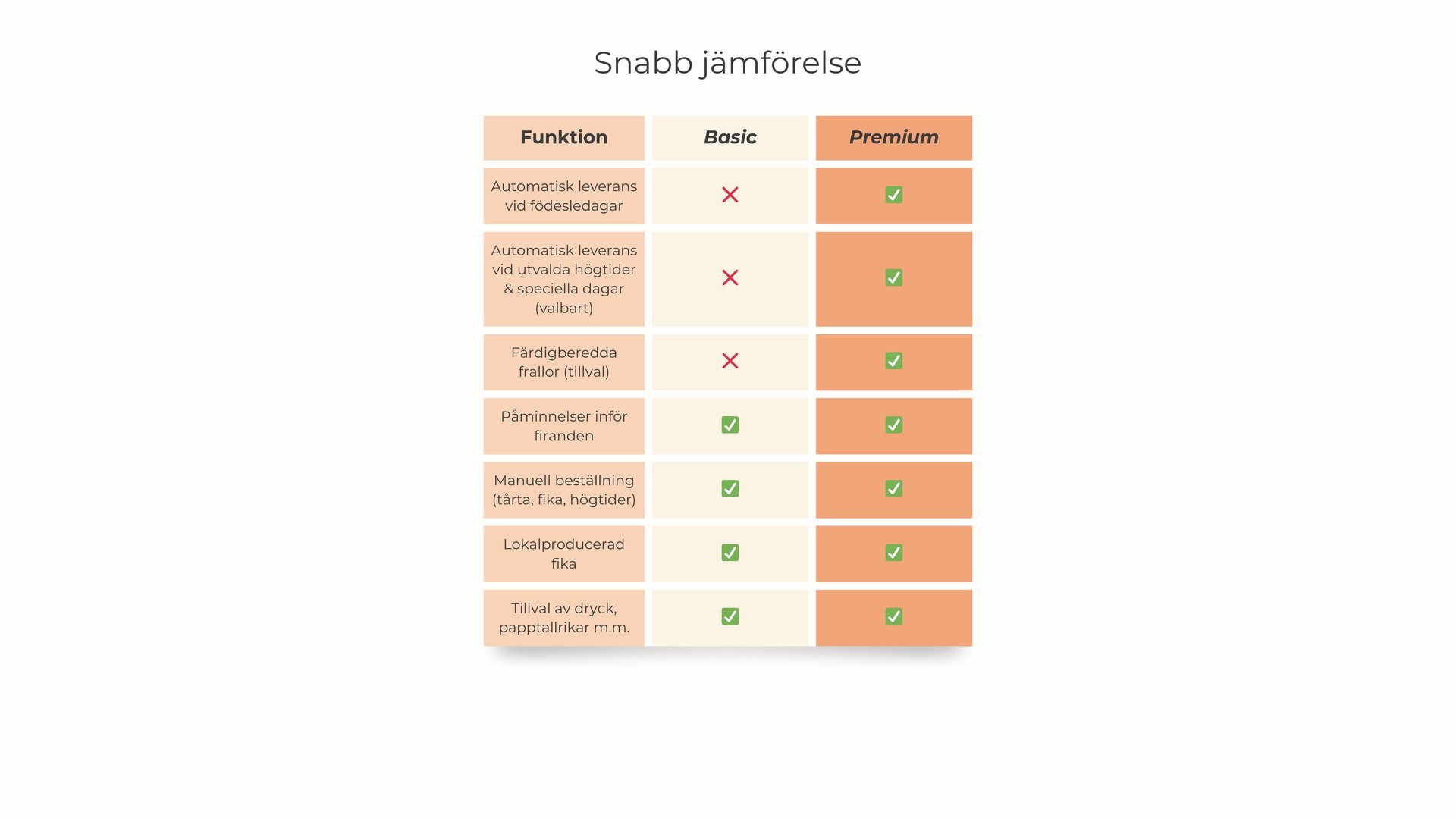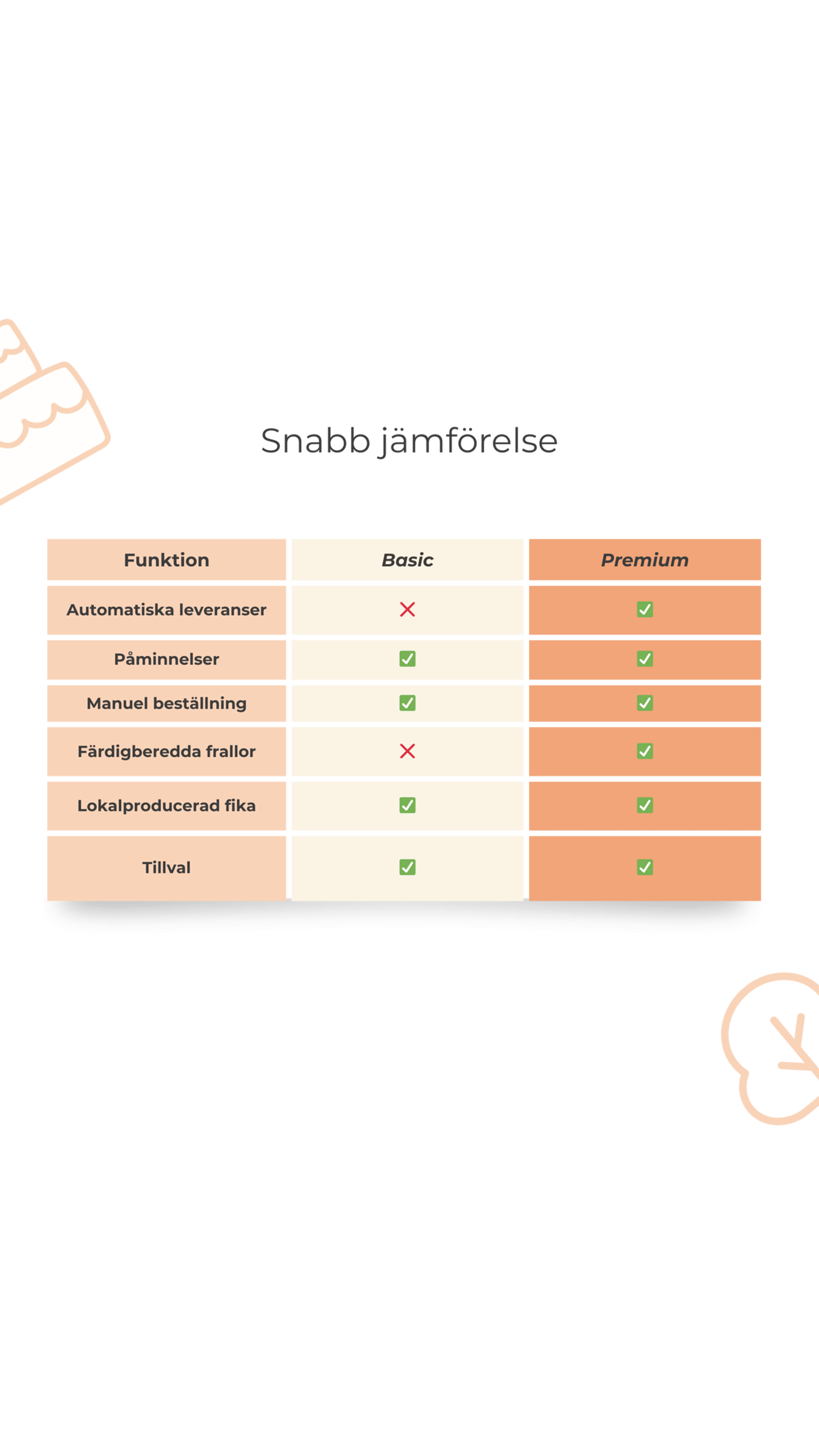 För högtider* som semmeldagen eller julfrukost får ni i stället påminnelser i god tid. Ni väljer själva om och när ni vill beställa, och kan planera flera månader i förväg om det passar bättre.